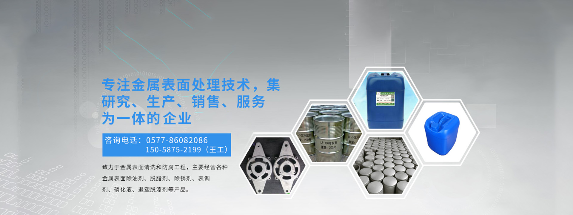 溫州龍飛環(huán)保科技有限公司是金屬表面處理技術集研究、生產(chǎn)、銷售、服務為一體的高新科技企業(yè),致力于金屬表面清洗和防腐工程,主要經(jīng)營各種金屬表面除油劑、脫脂劑、除銹劑、表調(diào)劑、磷化液、退塑脫漆劑、除蠟水、防銹水防銹油、封閉劑、鈍化劑、發(fā)黑劑、著色劑、化學拋光劑、合成乳化劑、水處理劑等金屬表面處理劑,廣泛適用于產(chǎn)品的噴塑、噴漆、噴砂、電泳、電鍍前的表面處理以及表面終處理,現(xiàn)已涉通用機械零部件、汽摩配件、五金及電工工具、電器電腦、潔具閥門、教學儀器等。
